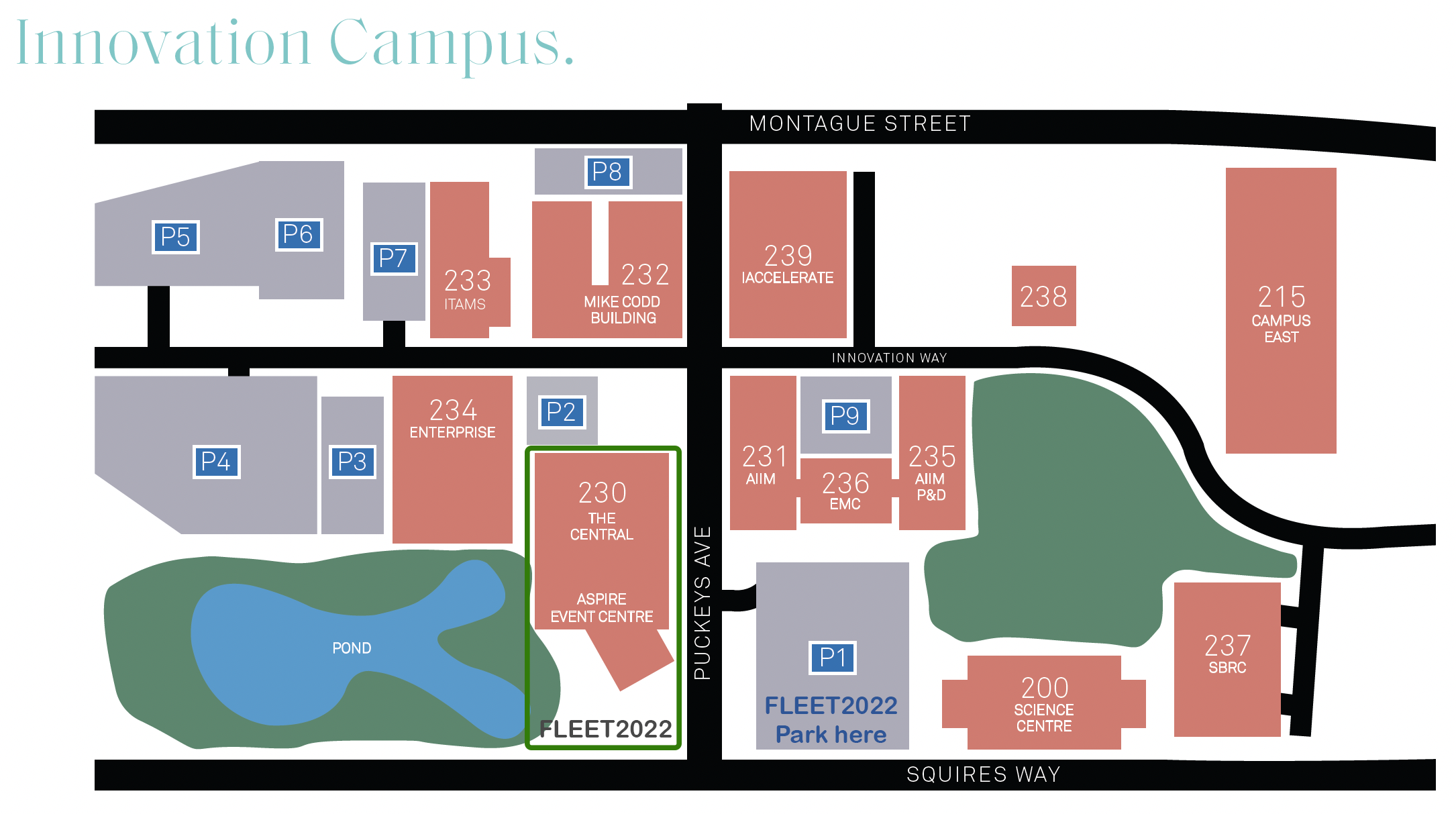 建议您在白天将车停在诺富特,并使用fleet组织的每日往返校园的班车。如果您喜欢使用自己的交通工具,停车费为每天16.50美元。